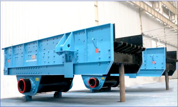 在砂石生产线中可为破碎机连续均匀地喂料避免破碎机受料口的堵塞。机是利用振动器中的偏心块旋转产生离心力,使筛厢、振动器等可动部分作强制的连续的圆或近似圆的运动。物料则随筛厢在倾斜的筛面上作连续的抛掷运动,并连续均匀地将物料送至受料口内。