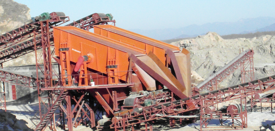 输送到反击破中的粗碎物料经过反击破破碎后,采用圆振筛对经过反击破破碎后的物料进行筛分:较大颗粒物料返送到反击破再次破碎; 粒级合格物料则根据需求,进行分级并由传送带传送到不同的储料堆进行贮存或者直接由卡车运往施工现场。